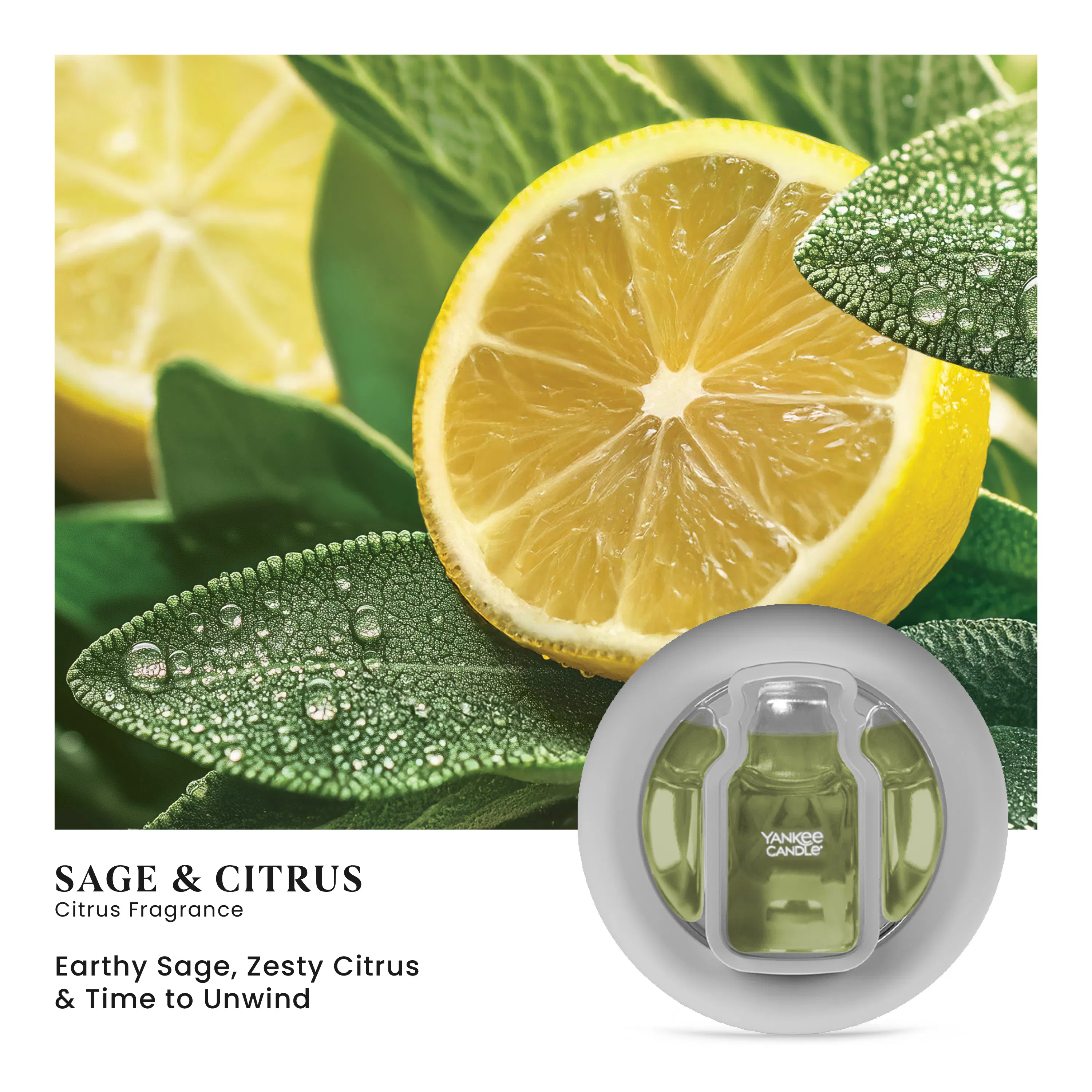 This is a Citrus fragrance. Sage & Citrus embodies the serenity that comes with feeling refreshed. Aromatic sage blends with zesty lemon scents in a bright burst of freshness, while dried lavender base notes add warmth, creating a sense of balance and setting the vibe for relaxation.